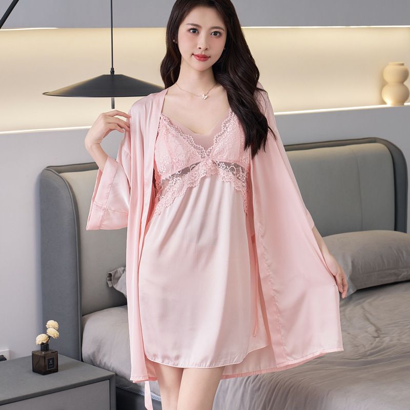 1 * Sexy Lace Silky Smooth Suspender Nightgown Built-in Chest Pads