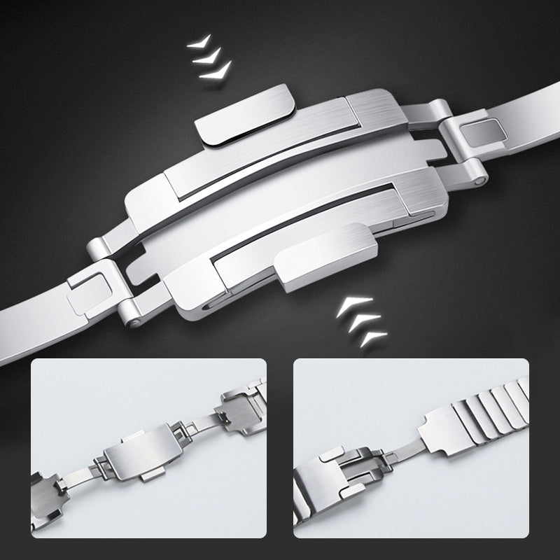 DOUBLE PRESS BUTTERFLY CLASP:Ā Made from high-quality stainless steel, our strap is designed with a double-press butterfly clasp that opens and closes smoothly, making it easy to put on and take off with a single press.