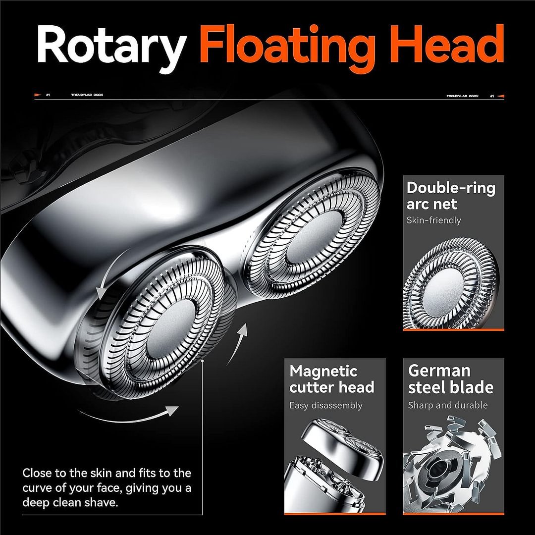 Sharp stainless steel whirl blade, specializing in hard beard, 0.1mm thin stainless steel foil, double ring 3D knife net, increase shaving volume, floating arc surface smooth and remove hair from your skin.