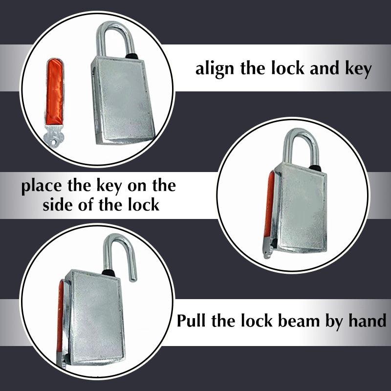 EFFORTLESS UNLOCKING: Designed for ease of use, simply align the lock and key, place the key on the side of the lock, and pull the shackle. This straightforward unlocking process ensures convenience and efficiency in securing and accessing your items.