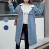 Women's Long Lapel Denim Coat with Cotton Lining