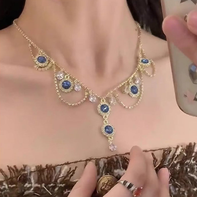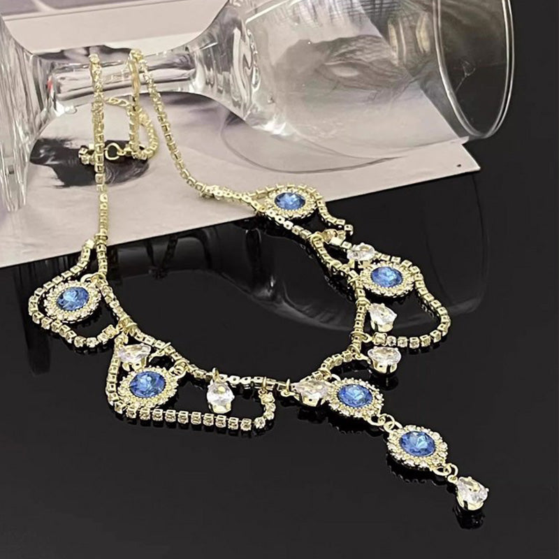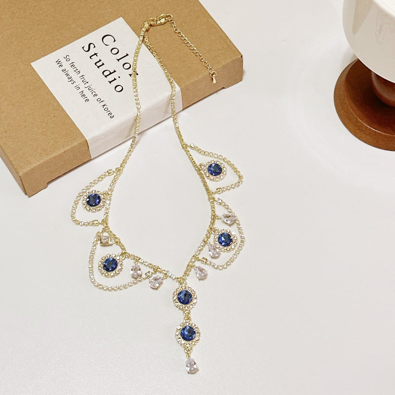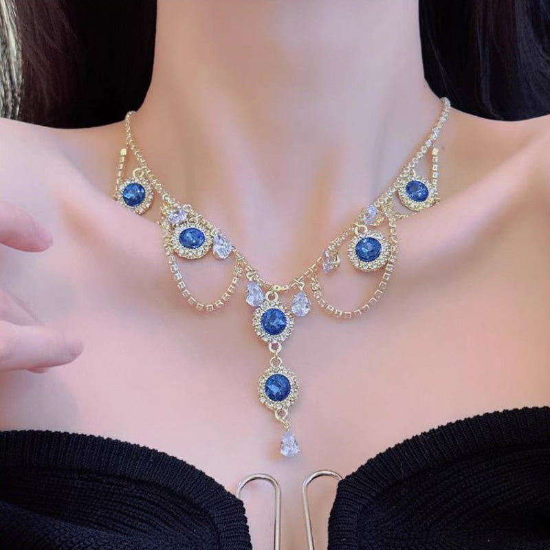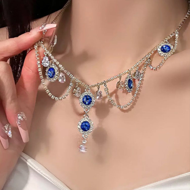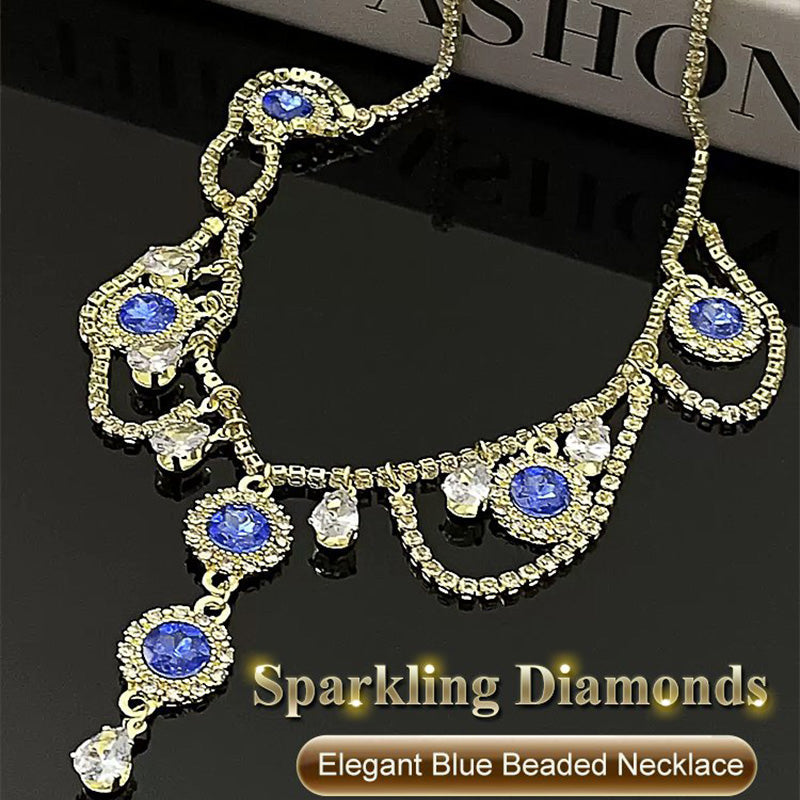 HIGH-QUALITY MATERIALS - Crafted with attention to detail, the Elegant Blue Beaded Necklace is made from durable alloy and zirconia. The zirconia accents are carefully set to create a dazzling display of light, resembling the brilliance of real diamonds.